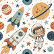 Adorable rocket ships, planets, and stars in soft, modern hues