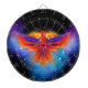 Fiery Phönix fliegt durch den Weltraum auf einer blauen und lila Nebel-Wolke. Der funkelnde Sternencluster, der den Kopf des mythischen Vogels krönt, bildet die Phönix-Konstellation. ♡ Idyllfire