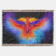 Fiery Phönix fliegt durch den Weltraum auf einer blauen und lila Nebel-Wolke. Der funkelnde Sternencluster, der den Kopf des mythischen Vogels krönt, bildet die Phönix-Konstellation. Horizontale Ausrichtung. ♡ Idyllfire