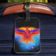 Fiery Phönix fliegt durch den Weltraum auf einer blauen und lila Nebel-Wolke. Der funkelnde Sternencluster, der den Kopf des mythischen Vogels krönt, bildet die Phönix-Konstellation. ♡ Idyllfire