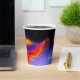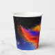 Fiery Phönix fliegt durch den Weltraum auf einer blauen und lila Nebel-Wolke in einem Sternenhimmel. Ein funkelnder Sternhaufen bildet die Phönix-Konstellation. ♡ Idyllfire