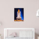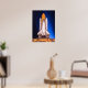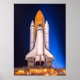 Das Space Shuttle Atlantis Poster zeigt ein Foto des Space Shuttle Atlantis, das an seinem hellorangefarbenen externen Kraftstofftank und zwei Raketenverstärkern am Launch Pad 39A im Kennedy Space Center der NASA in Florida at Night angebracht ist.