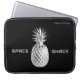 Ein auffälliger Laptop-Ärmel mit Illustration eines silbernen Ananas und dem Slogan "Space Snack". Dieses Notebook ist ein ideales Accessoire für diejenigen, die einen eigenartigen Stil, eine Sci-Fi und einen Spaß im Weltraum genießen möchten. Das Cover kann mit einem Namen oder einem anderen Text in der oberen rechten Ecke personalisiert werden, um eine individuelle Touch zu erhalten. Wählen Sie dieses tropische Design und genießen Sie einen Geschmack von futuristischem Spaß.