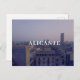 Postkarte mit der Skyline von Alicante, Spanien bei Dämmerung.