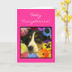 Tarjeta Posten espanol Betrugfoto de un perrito muy lindo y florecitas. Grußkarte auf spanisch für den Geburtstag eines Mädchens mit Foto eines Welpen und der Blumen. Auch verfügbar auf englisches und portugiesisch. Fotografie durch Maria Santos (Lusinhas tun Sul)