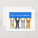 Cartoon Katzen stehend auf ihren Hinterpfeffern und halten ein blaues Schild auf, auf dem auf Spanisch "bald gut werden" steht.
