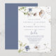 Die spanische Hochzeitsfeier im wilden Wald ist perfekt für eine tropische Hochzeit. Dieses Design zeichnet sich durch handbemalte Aquarelltöne in Weiß- und Blautönen aus, Blume mit grünem Blattwerk.
