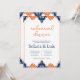 Dieses atemberaubende Talavera inspirierte Probe Dinner lädt mit verzierten Medaillen und gewagten geometrischen Motiven in Marine und Terrakotta ein. Umfasst optionales Backdesign. Personalisieren Sie Ihre Daten, indem Sie die Vorlage hinzufügen oder Schriftart, Größe, Farbe und Textplatzierung anpassen, indem Sie die Option "Bearbeiten mit dem Entwurfswerkzeug" auswählen.