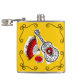 Whimsikisches Design gezeichnet in einem Retro-Stil mit Souvenirs aus einem spanischen Urlaub; eine schmiedeeiserne Gitarre, Lack-Ventilator und rote Rose. Ein individualisierbares Design in Schwarz, Weiß, Rot und Gelb für Sie, um mit Ihrem eigenen Text, Bildern und Ideen zu personalisieren. Ein originelles digitales Kunstbild.
