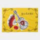 Wunderlicher Entwurf gezeichnet in einer retro Art, die Andenken von einem spanischen Feiertag kennzeichnet; eine Gitarre des bearbeiteten Eisens, ein lacy Fan und eine Rote Rose. Ein kundengerechter Entwurf im schwarzen, weißen, roten und goldenen Gelb, damit Sie mit Ihrem eigenen Text, Bildern und Ideen personifizieren. Ein ursprüngliches digitales Kunstbild.