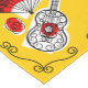 Whimsikisches Design gezeichnet in einem Retro-Stil mit Souvenirs aus einem spanischen Urlaub; eine schmiedeeiserne Gitarre, Lack-Ventilator und rote Rose. Ein individualisierbares Design in Schwarz, Weiß, Rot und Gelb für Sie, um mit Ihrem eigenen Text, Bildern und Ideen zu personalisieren. Ein originelles digitales Kunstbild.