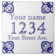 Spanisches Kachelschild mit optionalem Familiennamen und Straßennamen. Alle Farben können an Ihr Haus oder Ihr Unternehmen angepasst werden.