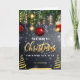 Weihnachtskarte mit Weihnachtsschmuck, Kiefernzweigen und abstrakten goldenen Weihnachtsbäumen