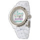 Sparkling Diamond Bezel Super Mom White Link Watch Armbanduhr