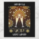 2019 Silvester Flaschen mit Party-Atmosphäre. Goldene Schaumweinflöten, die sich mit goldfarbenen Feuerwerken verbinden, die überall herumexplodieren. Jugendstil / Art Deko Stil Design.