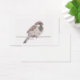 Aquarell und Tinte eines männlichen Hausspatches auf einem Draht. Diese Karten machen hervorragende Mini-Lesezeichen, ideal, um Freunde und Familie zu verbringen.