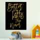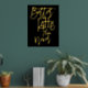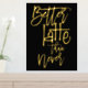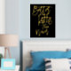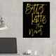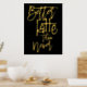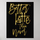 Fun Better Latte than Never Black Luxury Real Foil in Ihrer Wahl von entweder Gold oder Silber für dieses humorvolle Spiel auf den Worten Sprichwort auf einem klassischen schwarzen Hintergrund, die Sie ändern können, um eine andere Farbe, wenn Sie möchten.