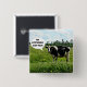 Schwarz-Weiß-Kuh stehend auf der Weide, mit einem kleinen humorvollen Sprichwort: "Ich bin hervorragend in meinem Feld!"