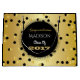 Fügen Sie Ihrem Geschenk eine persönliche Touch hinzu. Eine schöne Geschenktasche mit lustigen schwarzen und goldenen Konfetti, elegante Golddekorationen und den Namen des Absolventen.