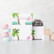 Spaßflamingo des heißen Rosas stehend in einer Pfütze des Wassers. Es gibt eine Palme mit einem toucan in ihm. Personifizieren Sie mit dem Namen und dem Alter des Geburtstagskindes.