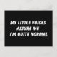 Meine kleinen Stimmen versichern mir, dass ich ganz normal bin. Ein lustiges und albernes Zitat über das Hören von Stimmen.