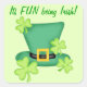 Mit diesem Aufkleber, der "Es macht Spaß, irisch zu sein" verkündet, finden Sie bei der Feier des St. Patrick’s Day viele Verwendungsmöglichkeiten für diese Aufkleber. Die originelle Kunst von Phyllis Dobbs besticht durch ein traditionelles St. Patrick und trendige Design, das mit Kleeblättern auf einem Top-Hut mit Goldknöchel besticht. Die Kunst ist auf einem helllimig grünen Hintergrund. Geh wild um den St. Patrick's Day zu feiern!