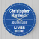 Vergnügen Sie sich mit einem Geschenk an der Wand in Form einer Wall-Uhr für einen Journalisten. Blaue und weiße Plakette. Bearbeiten Sie das Design, um die Formulierung so zu ändern, dass der Empfänger des Geschenks Anzug erhält.