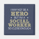 Ich bin vielleicht kein Held, aber ich bin ein Sozialarbeiter, so nah genug humorvolle Wortkunst in Sans-Serif und doodle Cross-Luch-Schriftart, der in weiß und goldgelb mit zwei bedrückten Akzent Sterne schrieb.