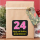 Dieses fröhliche, zum Geburtstag bestimmte Quadrat-Aufkleber-Design mit einer großen Zahl "24", mit einem dunkelrosa und hellrosa Streifen Muster. Es enthält auch die Meldung "Happy 24 th Birthday", und einen personalisierten Namen. Der Hintergrund ist schwarz. Personalisierte Aufkleber wie diese können als Geburtstagsgeschenk oder als Verpackung von Geschenken/Geschenken verwendet werden oder als Geburtstagsparty-Dekoration zum 24. Geburtstag von jemandem verwendet werden. [~Z0000578]
