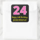 Spaß rosa Streifen "24": Glücklicher 24. Geburtsta Quadratischer Aufkleber