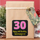 Dieses fröhliche, zum Geburtstag bestimmte Quadrat-Aufkleber-Design mit einer großen Zahl "30", mit einem dunkelrosa und hellrosa Streifen Muster. Es enthält auch die Meldung "Happy 30 th Birthday", und einen benutzerdefinierbaren Namen. Der Hintergrund ist schwarz. Spaß, fröhliche, personalisierte Aufkleber wie diese können als Geburtstagsgeschenk gegeben werden, während Geschenke/Geschenke verpackt werden, oder vielleicht als Geburtstagsgeschenk verwendet werden, wenn jemand zum 30. Geburtstag feiert. [~Z0000578]