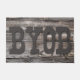lustige rustikale BYOB auf hölzernem Hintergrund