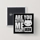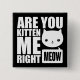 Cooler Spaßtext-Entwurfsknopf mit Wort-Sprichwort sind Sie Kätzchen ich rechter Meow und mit einem niedlichen kawaii Kätzchengesicht. Weißer Text auf einem schwarzen Hintergrund.