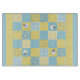 Ein lustiges Schneiderboard mit einem Imitat Patchwork-Design von Schafmotiven und -mustern in Blues und Yellows, kombiniert mit der Koordination von Karo Ginghams und Polkas Dots.