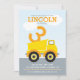 Viele Spaß Geburtstagseinladungen sind für den dump-LKW-Liebhaber mit essbarer Nummer für das Alter des Kindes, das gefeiert wird.