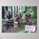 3 monkeys on a grey log covering there ears,mouth,& eyes in the woods with the words on a sign in red & black saying speak no evil hear no evil see no evil makes a nice poster