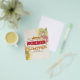 Sommerfarben von gelb, grün, orange und tiefrosa bis rot... Blume Illustrationen in Gelb/Orange, Rosa und Grün oben rechts und unten links Rand. weißer gefliester Hintergrund Schöner Typografie-Text in orange, von weiß bis hellgelb und magenta.