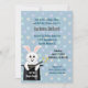 L'invitation d'anniversaire de lapin mignon a un lapin mignon qui sort d'un casquette noir de magicien. Le lapin a une baguette magique et les mots, Que la magie commence. Customisez avec les détails de votre fête d'anniversaire pour filles ou garçons.