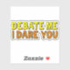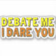 Debate mich, ich wage es, dass du dich aufklemmst. Ein selbstbewusstes Zitat einer Person, die sich durch jede Diskussion oder Konkurrenz streiten kann. Cooler, hellgelber und orangefarbener Text auf diesem Spaß-Aufkleber für ein Rede- und Diskussionsteam. Haben Sie die Zuversicht, dass Sie jedes Argument gewinnen werden.
