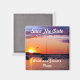 Benutzerdefiniert Speichern Sie die Datums-Magnete mit rote Rosen. Fügen Sie Ihren Namen und Hochzeitstag, um Ihre Hochzeitsgäste wissen lassen, um dieses Datum für Ihre Hochzeit zu reservieren. Dieses Design bietet einen schönen Sonnenuntergang.