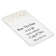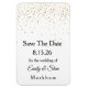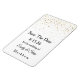 Dieser Save the Date flexible Magnet wird in Weiß mit kleinen goldenen Sternen gezeigt. Passen Sie dieses Element an, und ändern Sie den Text mit dieser Vorlage in Ihren Text.