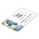 Save the Date Magnet wird in einem klassischen formalen Layout in der Farbe weiß angezeigt, mit schwarzem Text und Skripttext, der die Namen von Bride und Groom hervorhebt und mit einem hydrangea-Blume-Druck versehen ist. Klicken Sie auf die Schaltfläche Anpassen, gehen Sie rechts zu den Textfeldern und ändern Sie den entsprechenden Text in Ihren Text. Stock Image freepik.com all-free-download.com