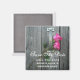 Eine Hochzeit speichert den Datums-Magneten mit einem Bild von zwei heißen rosa Rose in einer Scheunentür.