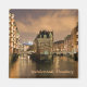 Ein Foto der Speicherstadt in Hamburg in der Nacht ist auf diesem Andenkenmagneten zu sehen. Der Text ist anpassbar oder abnehmbar. Die Magnete machen ein Geschenk, oder ein persönliches Geschenk, um auf Ihrem Kühlschrank oder Aktenschrank zu bleiben. Dieser quadratische Magnet ist 2" x 2" (5cm x 5cm) oder Sie können aus einem runden Magneten in verschiedenen Größen wählen.