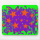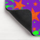 Mousepad mit lila und grünem Hintergrund, verstreut mit zauberhaften, leuchtenden orangen und grünen Sternen. Erstellt mit digitalen Techniken von Jess Perry.