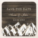 Sperrholz Rustikale Berge Save the Date Rechteckiger Pappuntersetzer