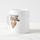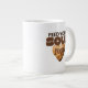 Das Tasse-Bild enthält den Satz "FÜTTRE DEIN SOUL", wobei das Wort "SOUL" in einem großen, fett orangefarbenen Schriftart hervorgehoben wird, der den Text "FÜTTRE YOUR" leicht überschneidet. Unterhalb dieses Textes befindet sich ein Bild eines herzförmigen Brotlaibs, mit dem Wort "PRAYER" in dunkelbrauner Farbe über das Brot geschrieben, das der Textur und Farbe der gebackenen Kruste ähnelt.