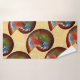 ensemble de serviettes qui comporte une coquille d'ammonite fossile opalisée colorée. Une touche de beauté pour un bain à thème nautique. Le Sphenodiscus lenticularis est originaire de la période crétacée tardive et se trouve sur de nombreux continents. Il a un motif de suture complexe et une surface lisse.