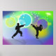 Ein lila, blaues und grünes Poster mit zwei Figuren des Kampfkunst, eine großartige Dekoration für ein Karate-Schlafzimmer, Taekwondo-Zuhause oder Dojo-Klassenzimmer.