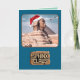 Die Sphinx trägt eine Weihnachtsmannmütze, als der Weihnachtsmann und sein Schlitten am Himmel klettern.